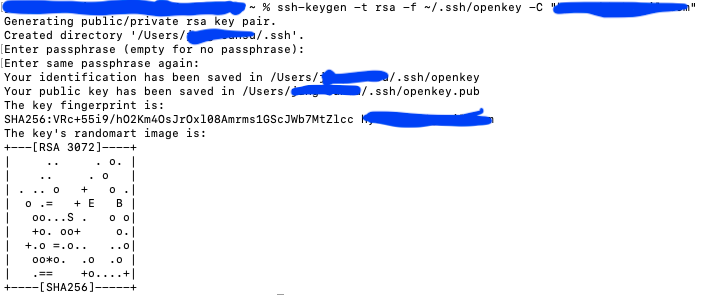 Enter passphrase 이 나오는 부분은 key를 사용해서 ssh 접속 시 입력할 패스워드를 지정하라는 내용입니다.